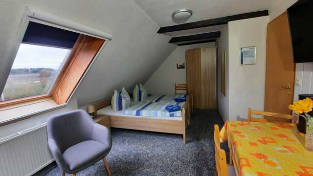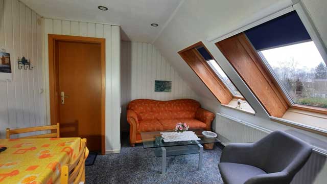 Schon gesehen? Mit drei Sternen wurde unsere Ferienwohnung für bis zu drei Personen ausgezeichnet. Darauf sind wir sehr stolz und tun auch viel dafür! Die Wohnung ist gemütlich und wohnlich und bietet reichlich Platz für drei Personen. Sie haben einen eigenen Eingang und können sich eigene Mahlzeiten in der kleinen Pantryküche zubereiten. Natürlich steht ein eigenes Bad zur Verfügung.