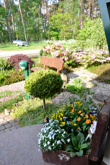 Zur Erholung stehen außerdem ein Grillplatz mit Sitzgruppe direkt am Gartenteich und eine Liegewiese zur Verfügung.